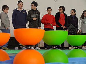 I bambini erano molto entusiasti, si sono divertiti tanto, hanno partecipato con tanta attenzione, cosa che a scuola non dimostrano sempre. All'inizio pensavo che dovessimo assistere ad uno spettacolo. La scenografia era molto accattivante e i colori mi hanno subito colpito. Li ho visti tutti uniti, qualche bambino in particolare che magari in classe è più timido qui l'ho visto che collaborava con gli altri; anche i piccoli screzi che si manifestano in classe qui si sono subito stemperati, e i ragazzi che non sopportano il contatto fisico qui hanno lavorato insieme fianco a fianco. Sono attività che, come lanciare e afferrare gli oggetti, migliorano anche la concentrazione, attività che rifarei, non cento ma mille volte; attività che sarebbe bello poter introdurre una volta a settimana nella programmazione scolastica.